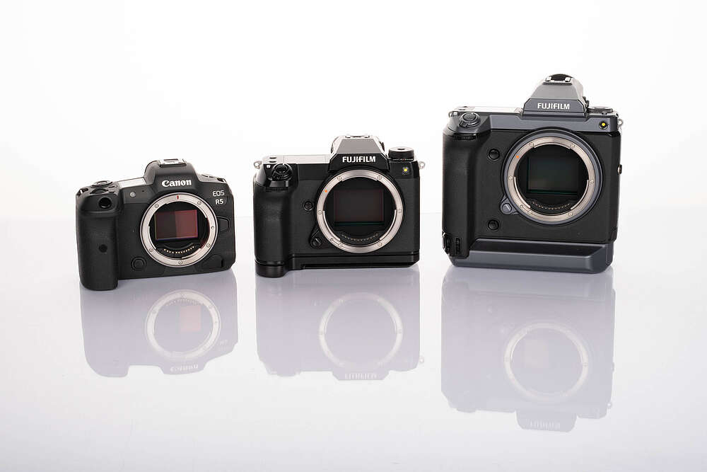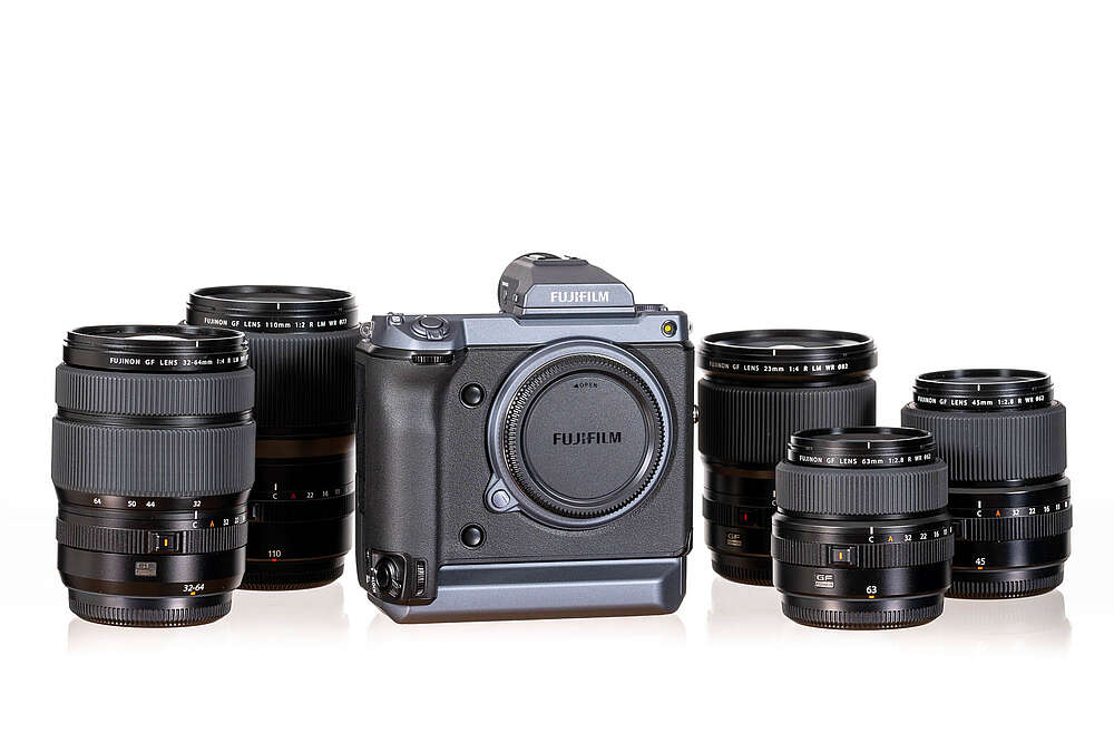 Seit 2023 ist die FUJIFILM GFX100 II mit einem 43.8mm×32.9mm Sensor GFX 102MP CMOS II HS mit Primärfarbfilter hinzugekommen.