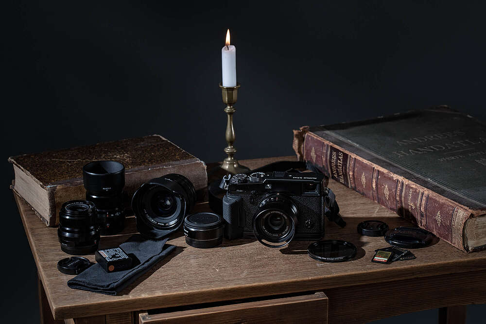 Auf dem Foto ist hier meine Fujifilm X-Pro2 Ausrüstung als Stillleben aufgenommen.
