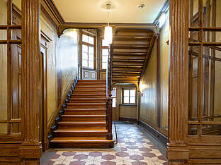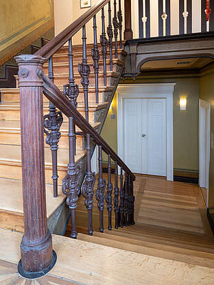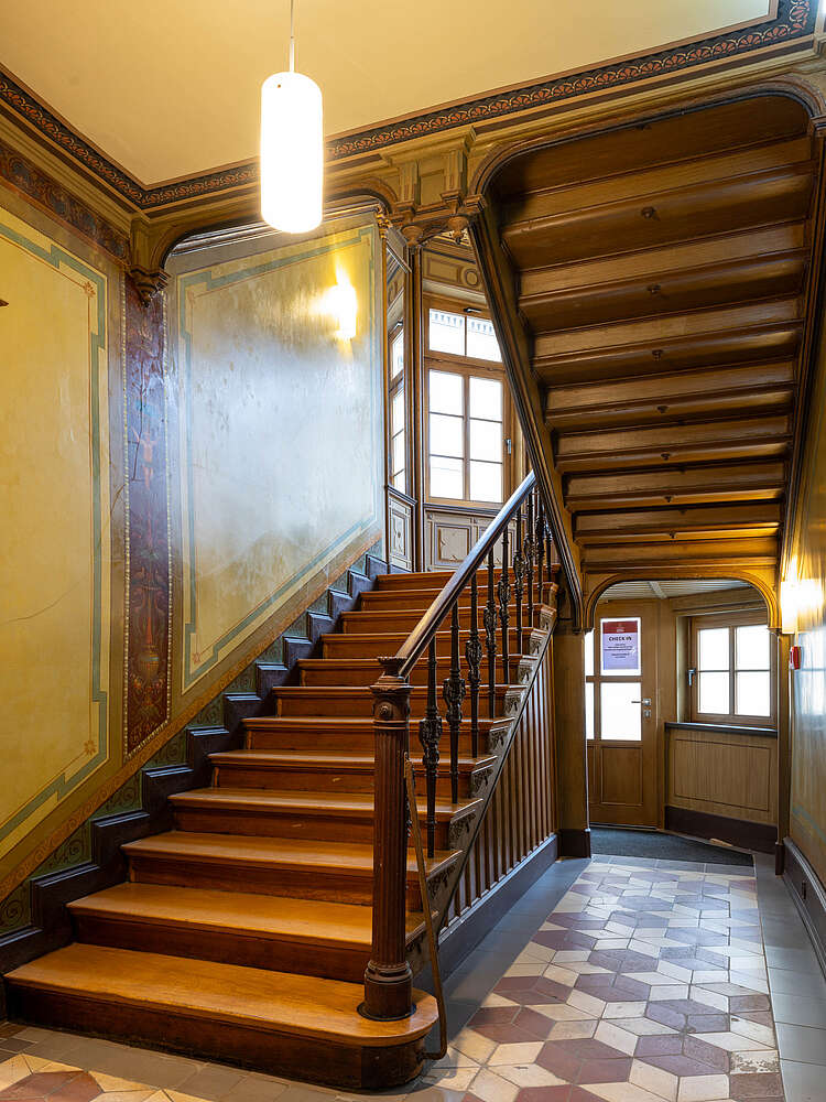 Gästehaus Nikolai wurde in der Zeit von 1820 bis 1840 erbaut. Die abgeschlossenen Restaurationsarbeiten legten original Malereien und Stuck wieder frei. Allein das Treppenhaus ist ein Besuch wert.