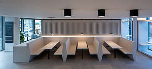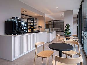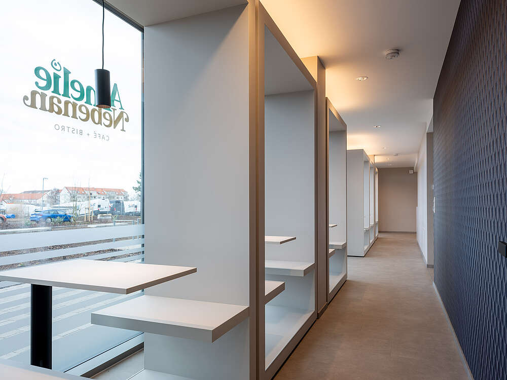 Das Architekturbüro Südseite Architektur hat den Innenausbau des Café und Bistro - Amelie Nebenan für die Lebenshilfe Erfurt geplant und umgesetzt. Das Konzept fügt sich harmonisch in das neu entstandene Gebiet am Europaplatz in Erfurt ein.
