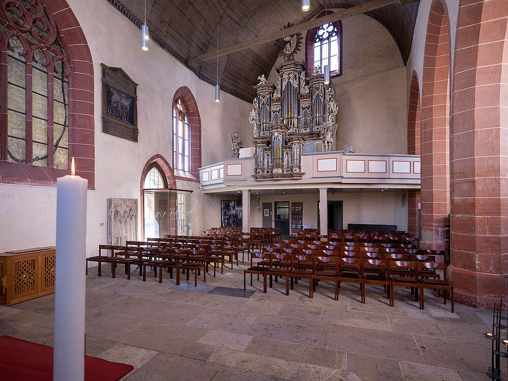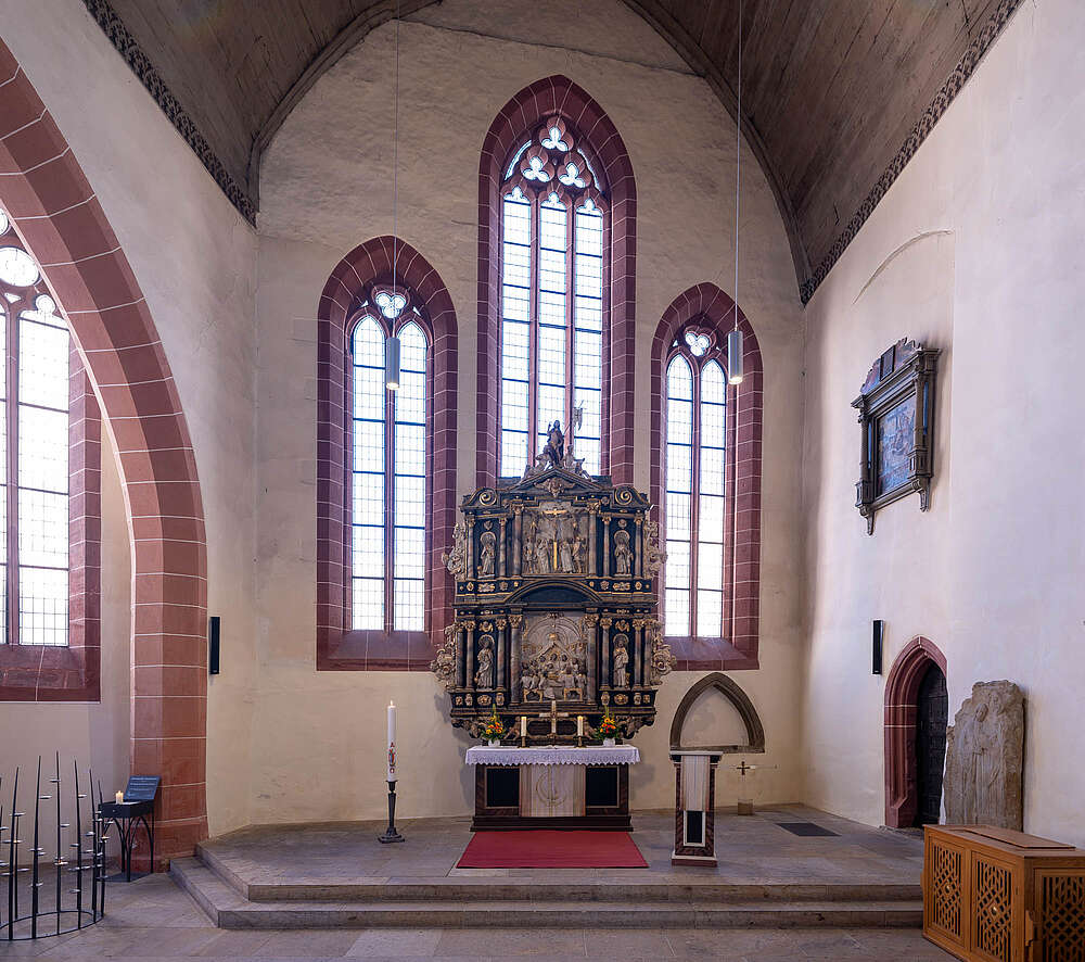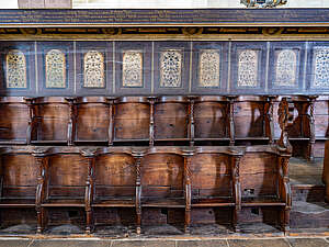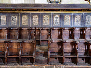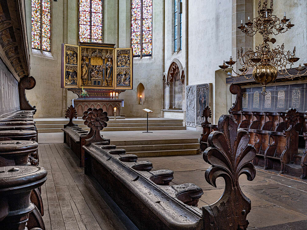 Das Chorgestühl in der Predigerkirche ist um 1280 gefertigt und in die damals noch nicht fertiggestellte Kirche eingebaut worden. Der vom Lettner abgetrennte Hohe Chor der dreischiffigen Basilika beherbergt dieses wahrscheinlich älteste noch existierende und zusammenhängende Chorgestühl Europas. Im übrigen, saß der Dominikaner Mönch, Prior und Mystiker Meister Eckart auch auf diesen Bänken.